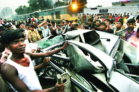 ইফতারির সময় সমাগত। এক কারে 4জন। যার গাড়ী সে ড্রাইভ করছে। তাড়া আছে, তবু অসাবধান নয়। সোনারগাঁও রেলক্রসিং। একদম তরুণ টার ব্যাংকার, এইচএসবিসিতে কর্মরত, বাসায় যাচ্ছেন। 18.10.06, সন্ধ্যা। রেলগেট পড়েনি, লালবাতি জ্বলছে না, এমন কি ট্রেনের কোন হুইসেল ও না। রেললাইনের উপর গাড়ি, যমদূতের মতো ট্রেন, এক ধাক্বায় গাড়ী কোথায়... বাকিটুকু পড়ুন