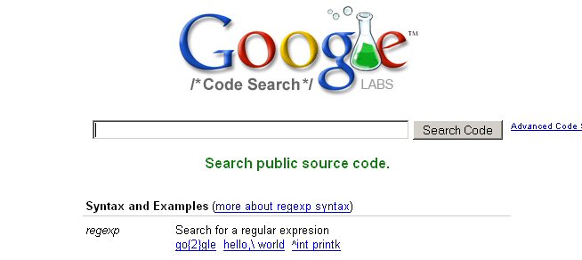 Google Code Search on Google Labs gives users a place to search for publicly accessible source code. It looks like a regular Google Search page but instead of searching Web pages, it's going to search billions of lines of code.