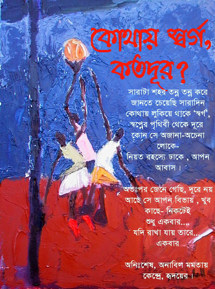 অপেক্ষার অনেক কিছু ছিল একদিন । রোদ -বৃষ্টি-বাতাস কিংবা মাঝরাতের নিরবতা। সবকিছু কোথায় যেন হারিয়ে যাচ্ছে দিনদিন। ই-মেইলের বাল্ক ফোলডারে জমা হচ্ছে অনেকগুলো মেইল, ইনবক্সটা কেবল ফাঁপা শূণ্যতার ম্যাচবক্স। মোবাইলটাও বেহুঁশ হয়ে আছে; কল-মেসেজ কিচ্ছু নেই। মনের ভিতর - মাথার ভিতর সারাদিন কীসব ভাবনা ঘুরঘুর করে। সে ভাবনা গুলো... বাকিটুকু পড়ুন