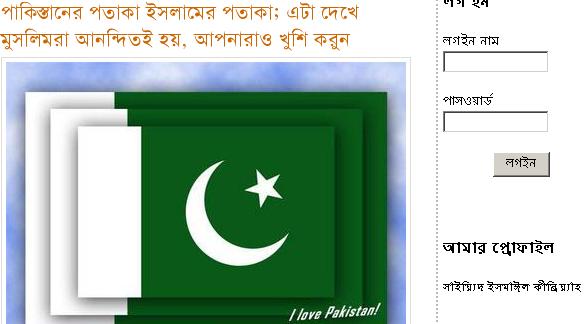 গত রাতে ইসমাঈল কীব্রিয়াহ নামের এক ব্লগার পাকিস্তানী পতাকা খচিত এই পোস্টিংটি দিয়ে যথেস্ট মনোযোগ আকর্ষণ করেছেন। আমি কোন গালাগালি করব না। নীচের প্রশ্নগুলো আমি শুধু ইসলামী আন্দোলনের সাথে জড়িত জামাত-শিবির ও তাদের শুভাথর্ীদের কাছে রেখেছি: