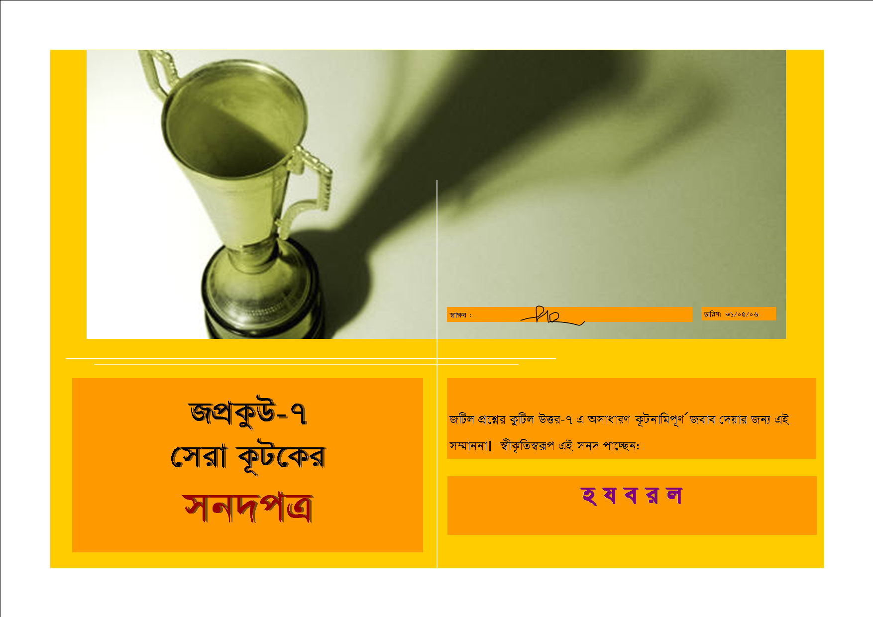 বৃষ্টি পড়ছে। নুপুরের শব্দের মতন। কলেজ পালিয়ে বেশ ভাবের মধ্যে আছি। গুড়ি গুড়ি রাশি রাশি বৃষ্টি কনা বাতাসে। এ সময়ে দুহাত ছড়িয়ে হাঁটার মজাই আলাদা। চোখে মুখে যখন গুড়ি গুড়ি বৃষ্টি এসে পড়ে তখন কিযে শিহরন উঠে মনে...। আচ্ছা স্বর্গে কি বৃষ্টি হয়? হবার কথা না; স্বর্গে যারা যাবে তারা... বাকিটুকু পড়ুন