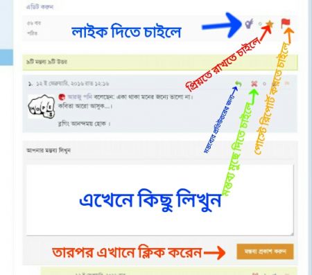 উক্ত তীর চিহ্নিত স্থানে ক্লিক করলে লেখার জন্য একা ফাঁকা ঘর আসবে! সেখানে কার্সর রেখে আপনার কাঙ্খিত মন্তব্যটি লিখে তারপর মন্তব্য প্রকাশ করুন অংশে ক্লিক করলে প্রতিউত্তর হয়ে যাবে!