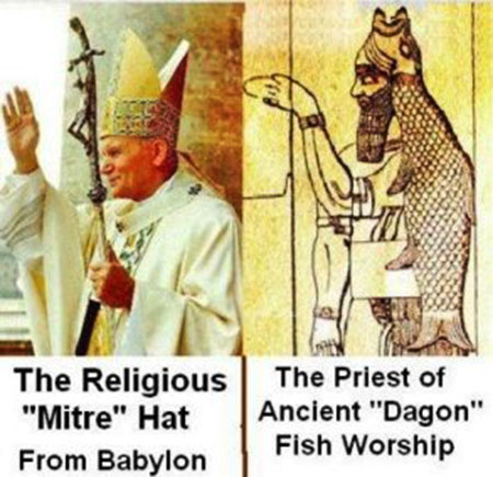 পোপের মাথার মুকুটের আকৃতি মাছের মুখ সদৃশ।