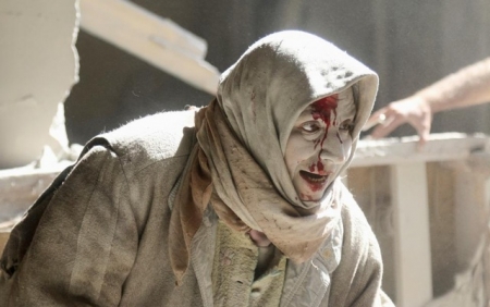 এপ্রিল ২৮, সিরিয়ার আলেপ্পো। বিদ্রোহী নিয়ন্ত্রিত এলাকায় চলছে বিমান হামলা।