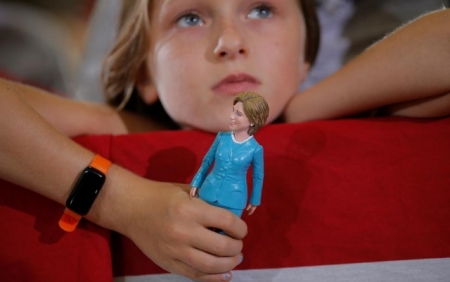 ওহিওতে ডেমোক্রেটিক পার্টির প্রেসিডেন্ট প্রার্থী হিলারি ক্লিন্টনের নির্বাচনী প্রচারে এক খুদে সমর্থক। তার আশা পূরণ হয়নি শেষ পর্যন্ত।
