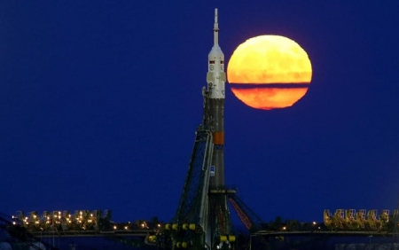 ১৪ নভেম্বর রাতে উদিত হল সুপার মুন; কাজাখস্তানের বাইকোনূর কসমোড্রুমে উৎক্ষেপণের অপেক্ষায় একটি সয়ুজ এমএস-০৩