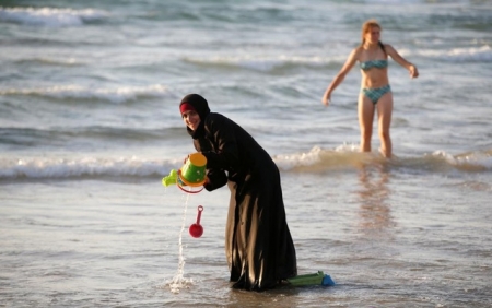 তেল আবিবের সৈকতে ২১ অগাস্ট দেখা গেল এই বিপ্রতীপ চিত্র।