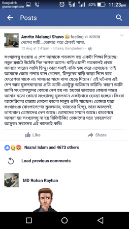 বাসা ভাড়া সংক্রান্ত এমন পরিস্থিতির শিকার আমি আরো সাত আট বছর আগেই হয়েছি ৷ হিন্দু বাড়িতে বাসা ভাড়া নিতে গিয়েছিলাম ৷ ভাড়া দেবে কিনা জিজ্ঞেস করার পর বাড়িওয়ালীর প্ৰথম জিজ্ঞাসা ছিল হিন্দু না মুসলমান ৷ মুসলমান বলতেই মুখের উপর না করে দিয়েছিল সেদিন, কয় আমি তো কোনদিন এ নিয়ে উচ্চবাচ্য করিনি ৷ ধর্মীয় কোন বাধা নিষেধ থাকতে পারে এই ভেবে নিজেকে বোঝ দিয়ে চলে এসেছিলাম, কারন অন্যের ধর্মকে কিভাবে সম্মান করতে হয় সেটা আমার জানা ছিল, আছে ৷