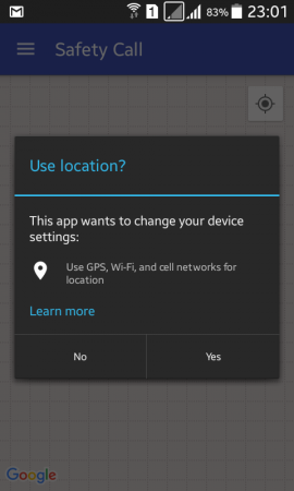 এখন আসি কিভাবে এই ছোট্ট সহজ অ্যাপটি ব্যবহার করবেন তা নিয়ে। অ্যাপটি ওপেন করলেই আপনার ফোনের Location যদি enable করা না থাকে তবে নিচের মত একটি পপআপ আসবে।